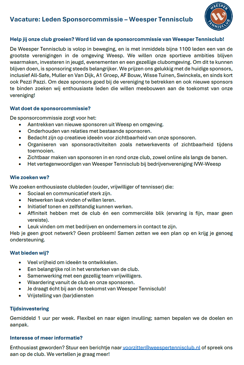 Vacature: Sponsorcommissie